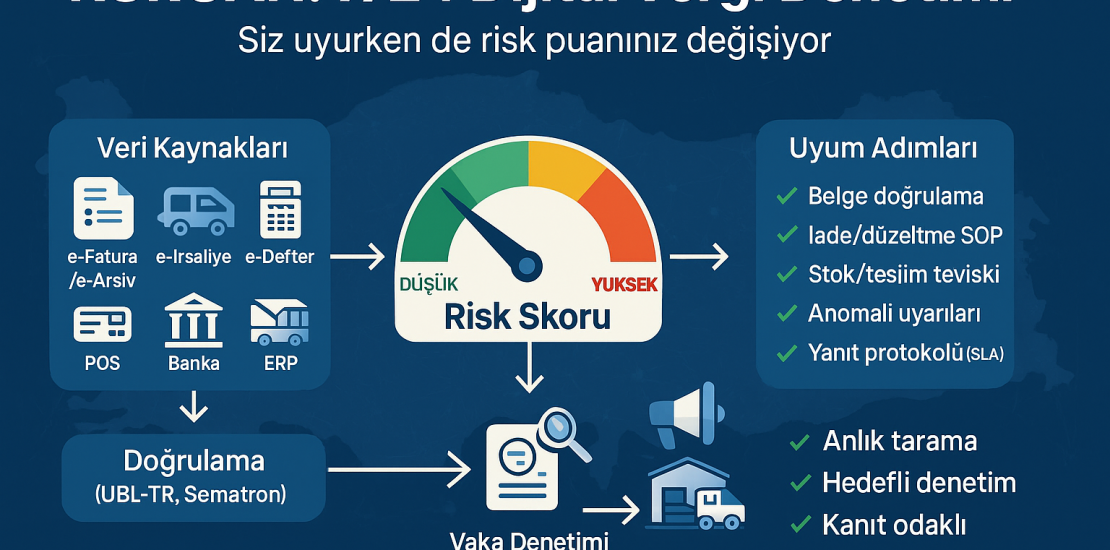 Sistem, e-Fatura/e-Arşiv, e-İrsaliye, e-Defter, POS, banka, gümrük ve ERP vb. e-belge ve ilgili verilerden işlem/mükellef risk skoru üreterek mükellefleri denetleyecek ve buradaki risk puanına göre, bilgi isteyecek.