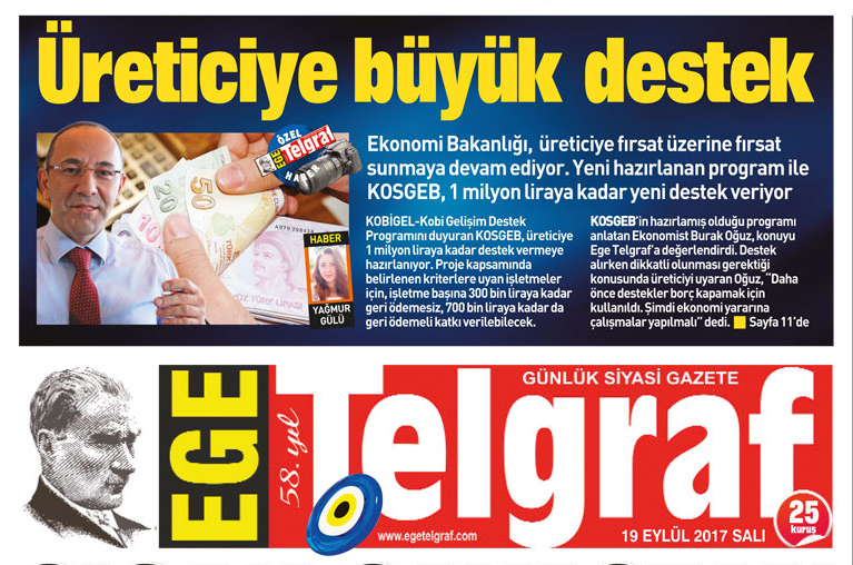 YAĞMUR GÜLÜ / ÖZEL HABER KOSGEB’den üreticiye hayat verecek destek! KOSGEB’den üreticiye hayat verecek destek geliyor. Kobigel- Kobi Gelişim Destek Programı’nı değerlendiren Ekonomist Burak Oğuz, “Bu destek iyi değerlendirilmeli” dedi KOSGEB tarafından uygulanan Kobigel- Kobi Gelişim Destek Programı çağrısı 11 Eylül tarihinde yayınlandı. Proje kapsamında işletme başına 300 bin lira’ya kadar geri ödemesiz, 700 bin